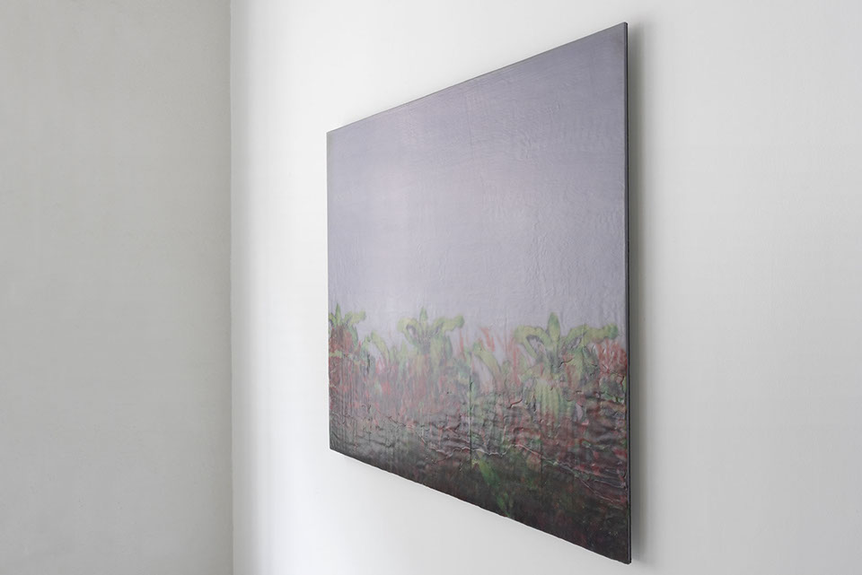 Diorama-aquarium, série de 4, caoutchouc contrecollé contre du dibond, colle vinylique et poudre de talc, transfert d’impression jet d’encre, 117x87cm.