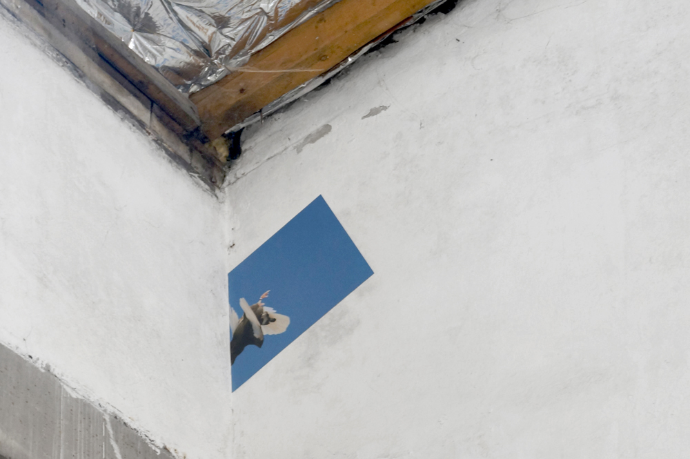 Unnamed_0.1.2.1.1.1.2.1, peinture bleue, billes bleues,vue de l'exposition collective Mercato, atelier SUMO, Lyon, 2015